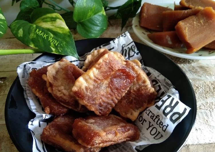 Biasanya kue keranjang atau dodol cina yang sudah mengeras di goreng.